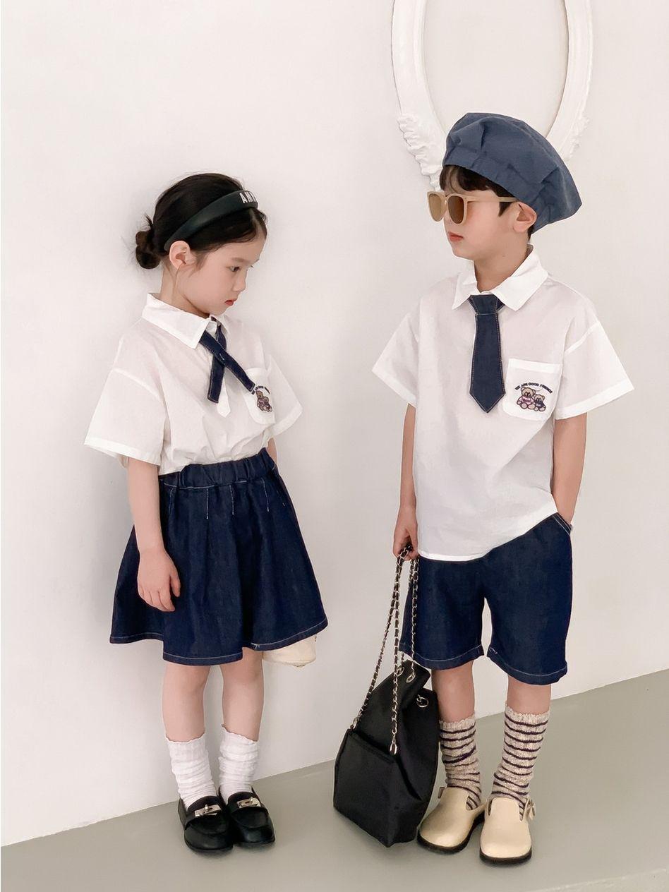 해외배송!남매룩 남아 상하복세트 여아투피스 여름 반팔 반바지 키즈세트룩