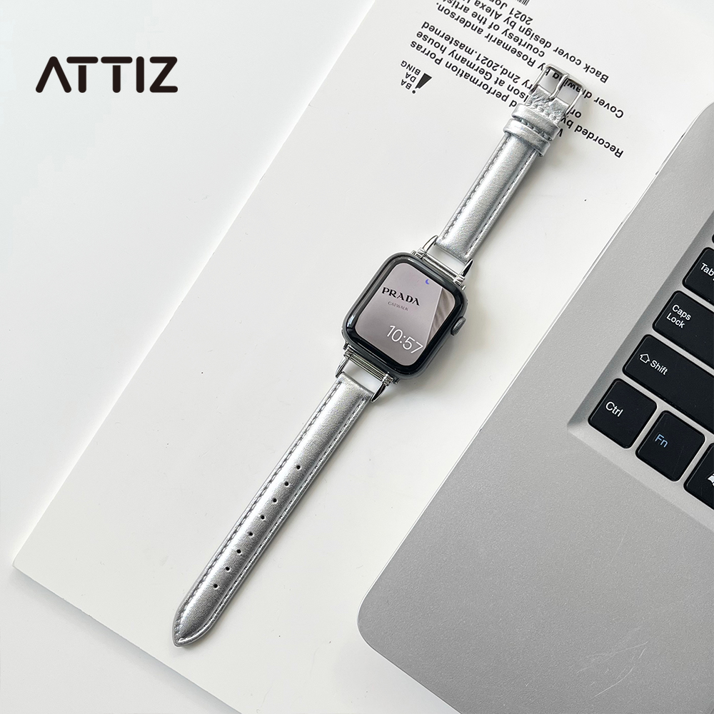 아띠즈 글로시 애플워치 가죽 스트랩 슬림 실버 로즈 골드
