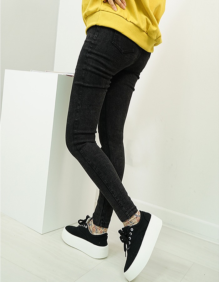 브이 밑단 슬림핏 스판 블랙진/C1029