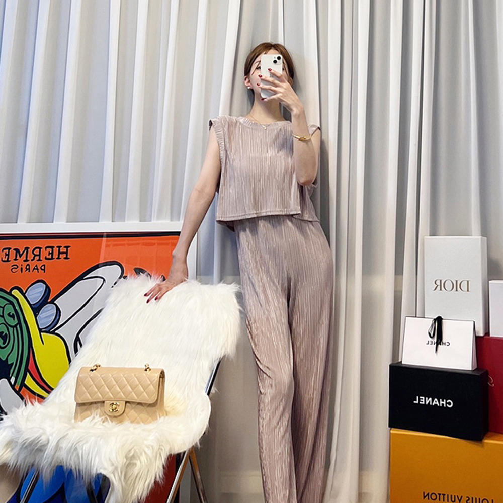 [세트가격/핏보장/주름/자글이/옆트임/슬릿/냉장고바지] 플리츠 나시 밴딩 팬츠 투피스 셋업 키작녀 여행룩 (3color)