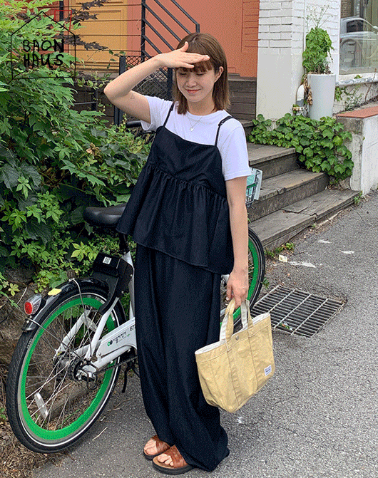 [8천장돌파/기획특가][BAON] 티도 리본 데님 나시 블라우스 팬츠 세트