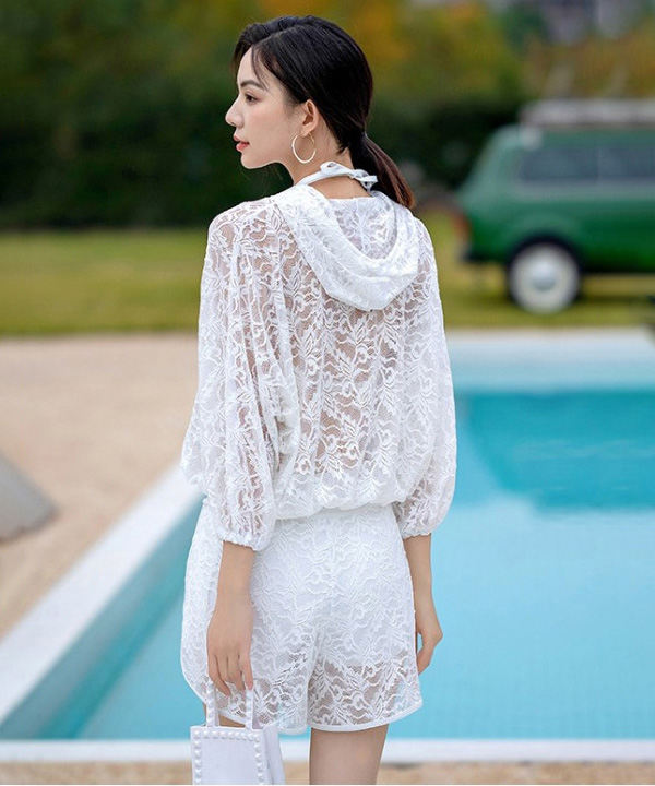 리엔 시스루 레이스 후드탑 비키니 돌핀팬츠 빅사이즈 모노키니