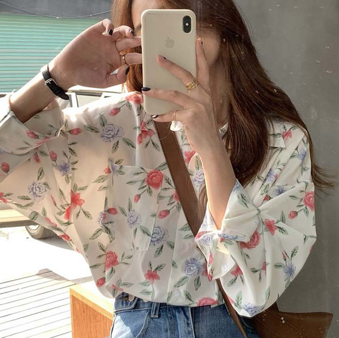 [2컬러] 플라워블라우스 셔츠블라우스 여성블라우스 꽃 패턴블라우스 여자블라우스 긴팔블라우스 봄 여름 가을 데일리 꽃무늬 패턴블라우스 예쁜블라우스