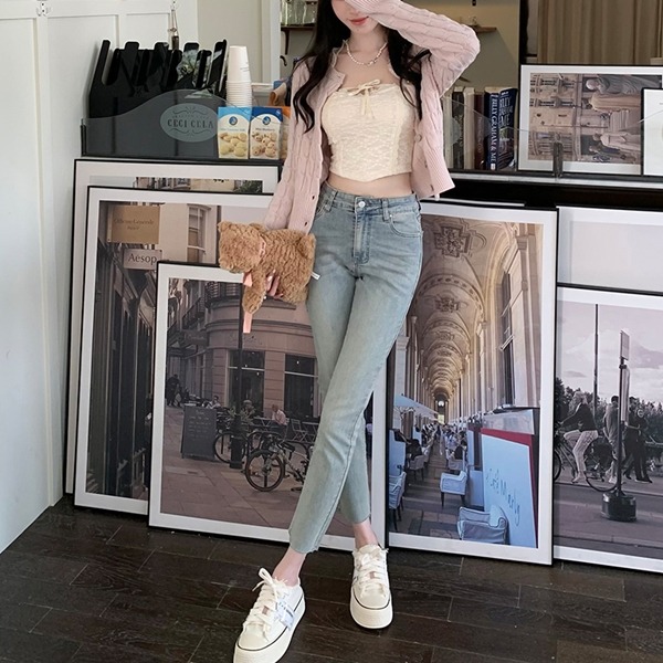(당일발송) 경선 연청 컷팅 스키니 데님팬츠