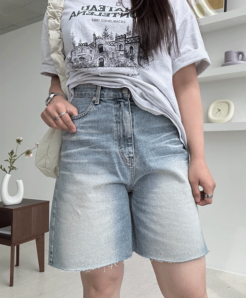 566 워싱 3부 중청 데님 반바지 [S-2XL]