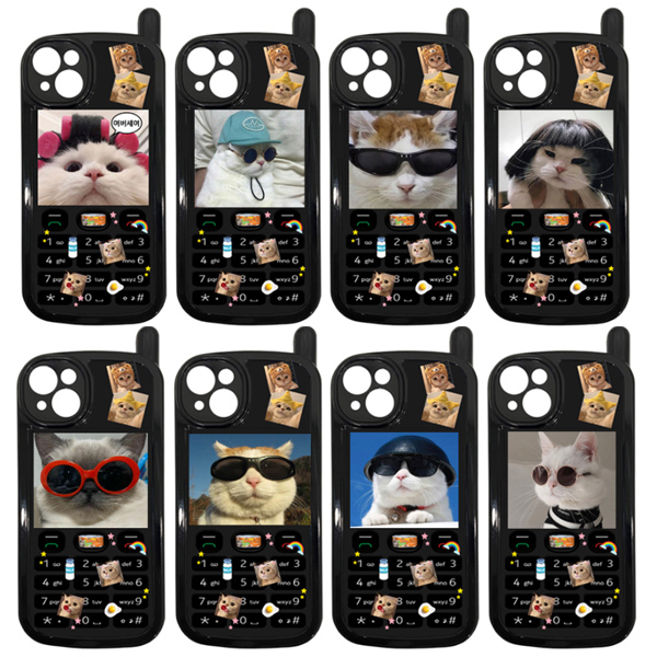 OY11 고양이 핸드폰 젤리 빈티지 레드로 키치 감성 일러스트 먼치킨 터키시 앙고라 집사 커플 휴대폰 아이폰케이스 11 12 13 14 플러스 프로 맥스