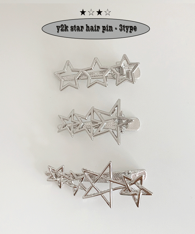 [3type] y2k 실버 메탈 별 유니크 스타 옆머리 헤어핀 집게핀