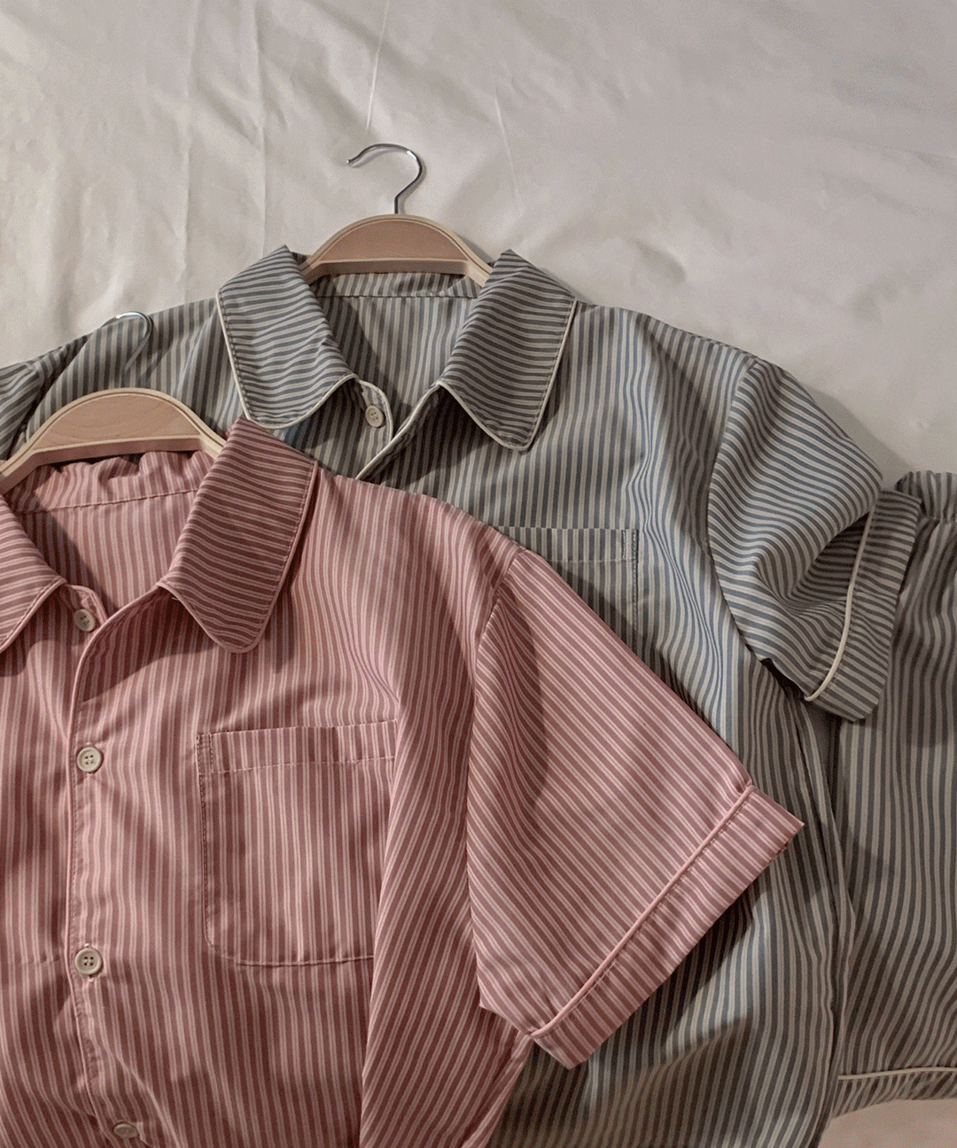 [8천장 돌파] J'eu 그릭 스트라이프 반팔 파자마 잠옷 세트 2color, 2size