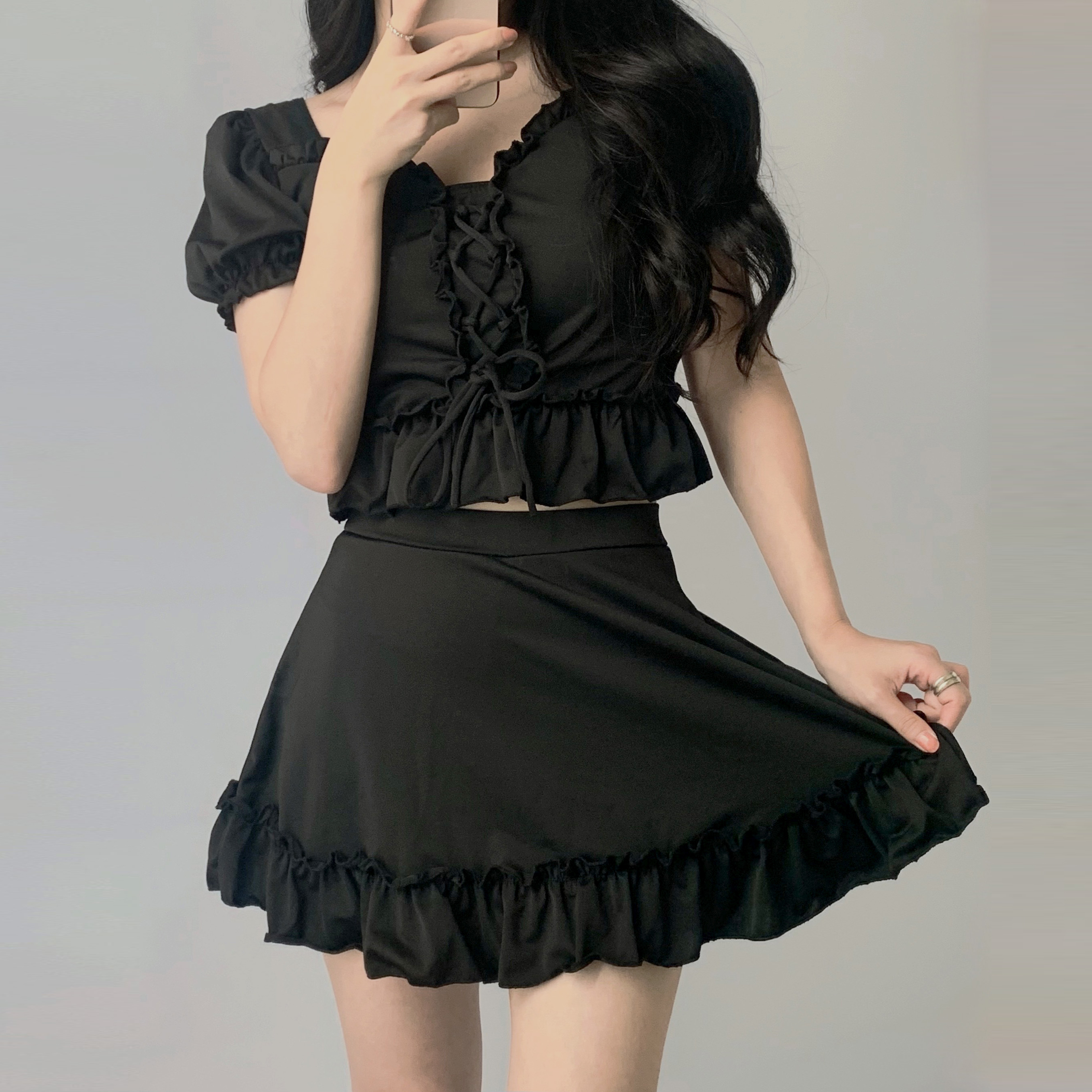 [키작녀/당일출고] 프릴 퍼프 단점 0% 체형커버 원피스 수영복