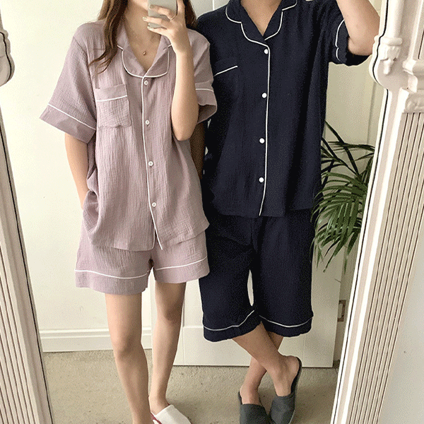 [세트] 커플 반팔 요루면 잠옷 홈웨어 (23T164AB)