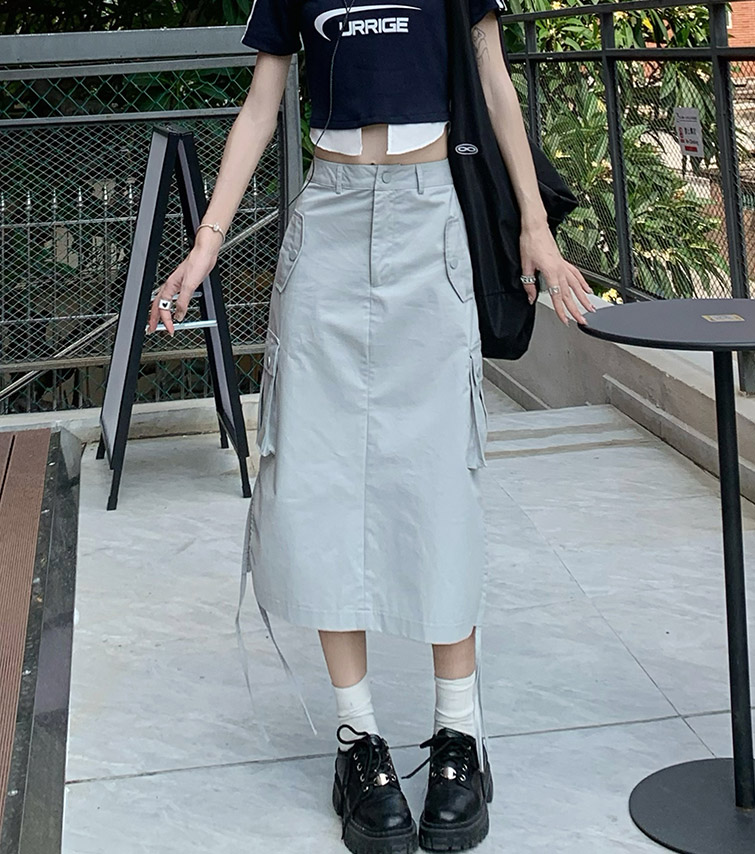 스포티 스판 크롭탑/하이웨스트 카고 롱 스커트 코디세트