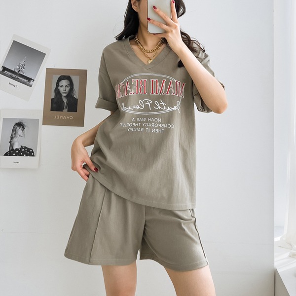 마이애 반팔티셔츠반바지세트)셋업/핀턱반바지/츄리닝상하의세트/트레이닝복세트/상하의복/츄리닝세트/영문프린팅/박스티/루즈핏