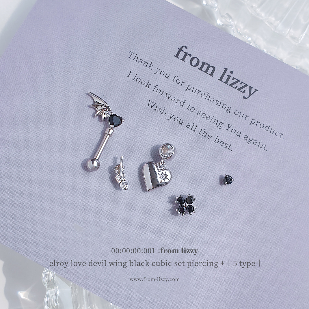 [무배/5세트]엘로이 러브 데빌윙 블랙 큐빅 세트 피어싱