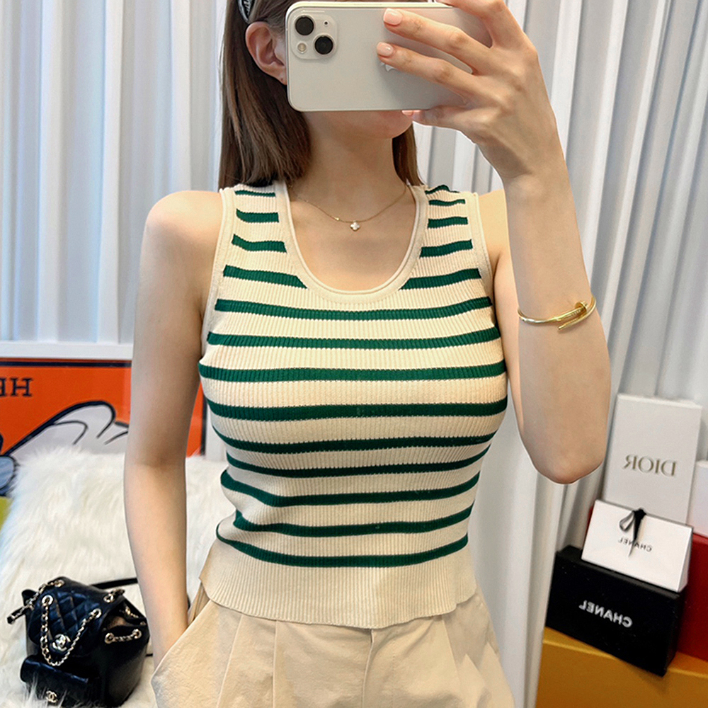 [허리잘록/핏보장/여리핏/단가라나시] 스트라이프 여름 니트 나시 U넥 민소매 키작녀 바캉스룩 (3color)
