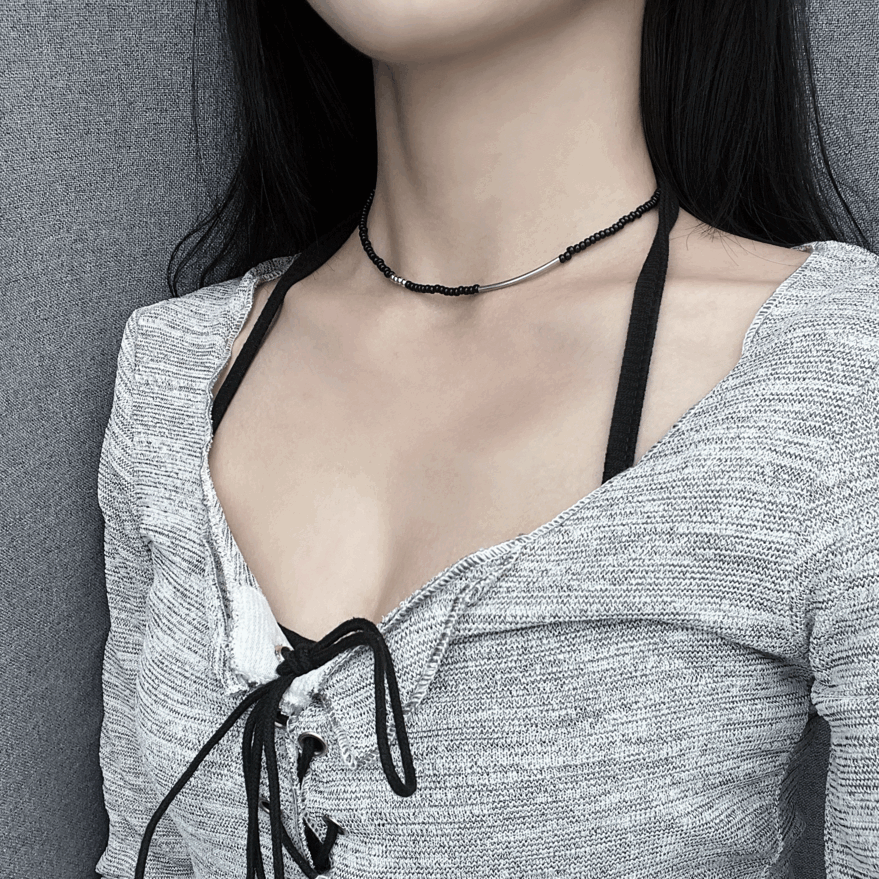[자체제작] 파이프 써지컬 볼 블랙 비즈 무채색 초커 목걸이