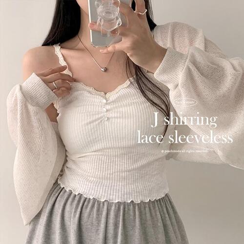 [레이어드템/여름나시/여리여리~] 제이 셔링 단추 골지 크롭 레이스 끈 나시 (2color)