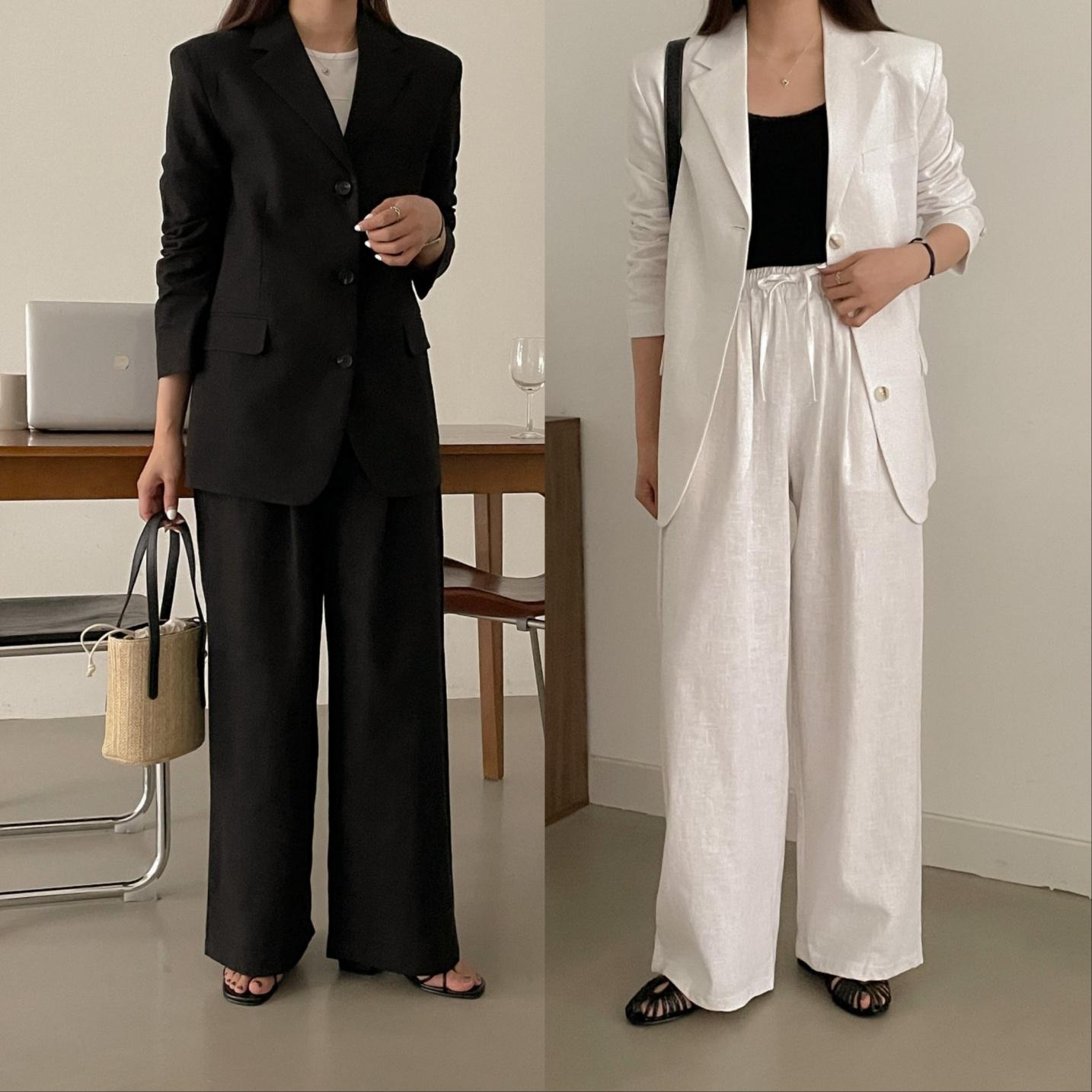 여성여름정장 린넨 캐주얼 와이드 여성정장 세트 여자셋업 수트