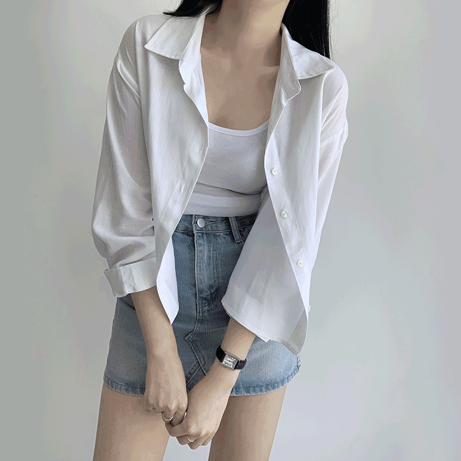 [여름 필수템] 린넨 레이온 혼방 크롭 긴팔 블라우스 P0007815