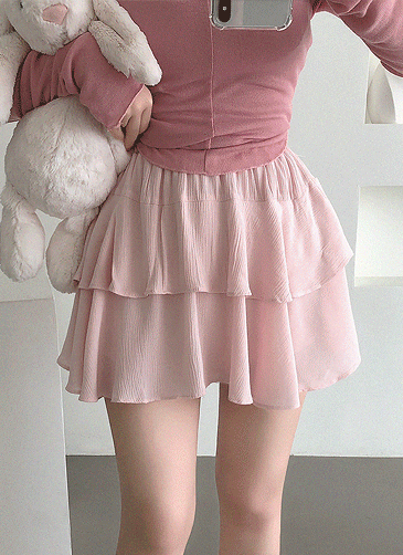 [바지안감/하늘하늘]란넬 프릴 쉬폰 이중 플레어 캉캉 미니 스커트(아이/핑크/소라/블랙)