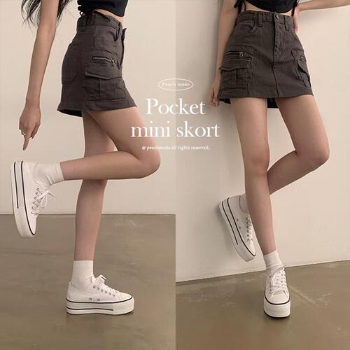 [저렴이xx/카고치마] 고퀄리티 건빵 포켓 미니 치마 바지 (2color) [y2k/흠뻑쇼/워터밤]