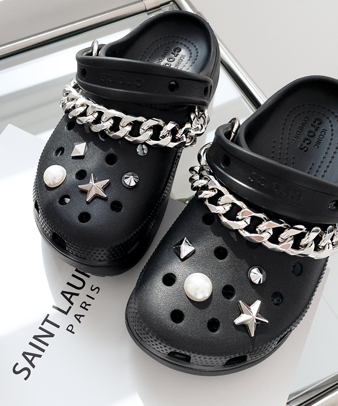 당일배송 단품 심플 징 스터드 메탈 실버 체인 클로그 호환 파츠 신발 꾸미기 악세사리 참