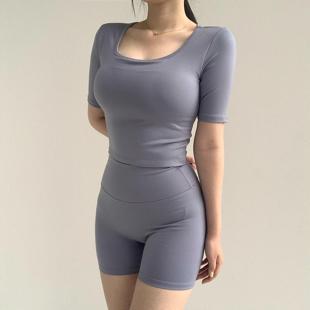 209[무료배송]캡내장 운동복 래시가드 수영복 헬스 요가 필라테스 노브라티 브라티 크롭 반팔 크롭티 여름 조깅복 여자헬스복 런닝복 스퀘어넥 오부 반팔