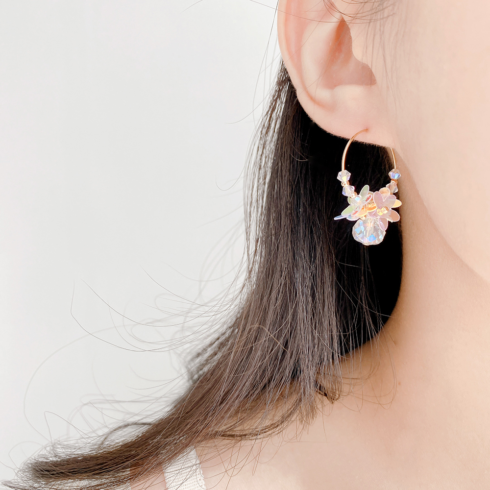 [무니켈] 크리스탈 플라워 링 귀걸이