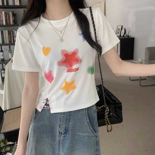 화이트 색깔 별 여성 캐주얼 반팔 티셔츠 J10