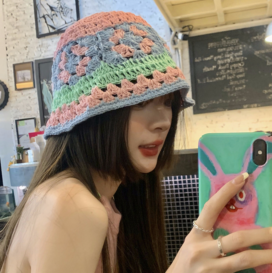 (당일발송) 여름 플라워 니트 버킷햇 벙거지 모자 키치 빈티지 뜨개 크로셰 아메카지