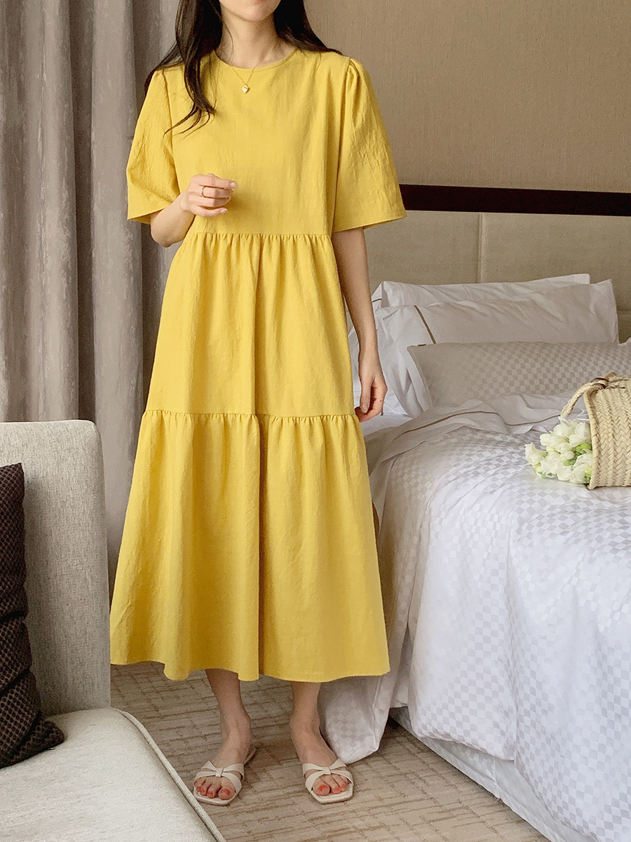 노란색원피스 캉캉롱원피스 린넨원피스 77사이즈원피스
