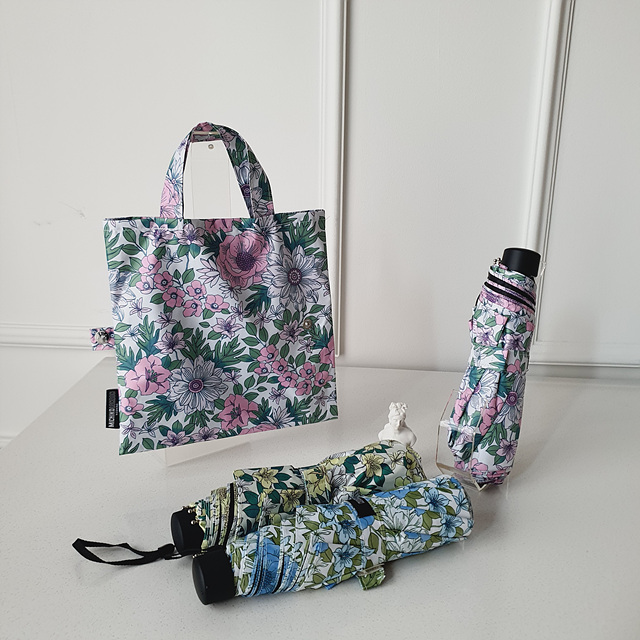 (에코백세트,백화점 납품)우양산 보타닉 가든 플라워 패턴 미니 3단우산 uv99%차단