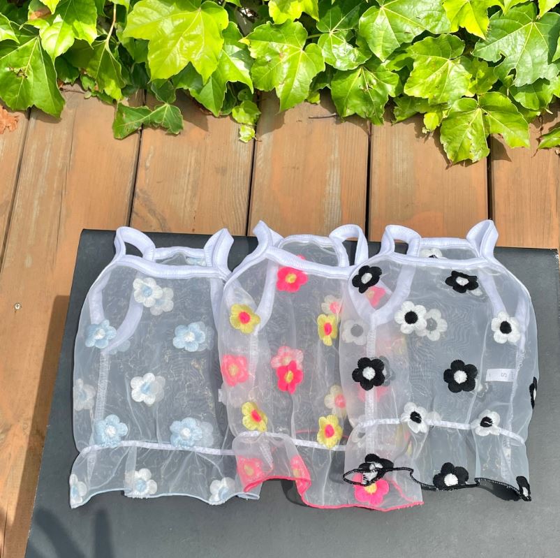 플라워 시스루 나시 S-2XL 민소매 애견 시원한 여름옷 봄옷 가을옷