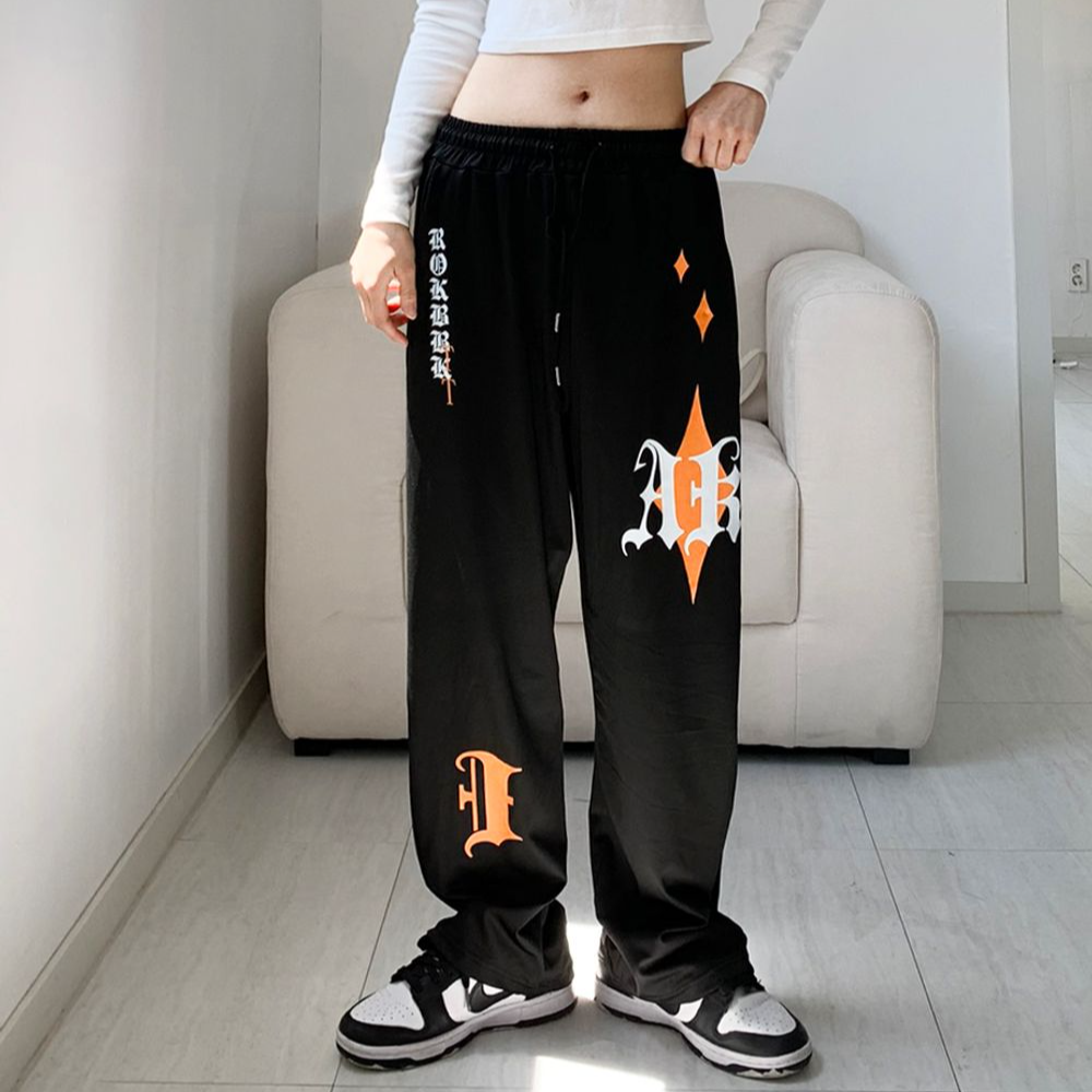 베르 스트링 와이드 팬츠 레터링 프린팅 힙한 댄서 투웨이 추리닝 조거 트레이닝 팬츠 바지