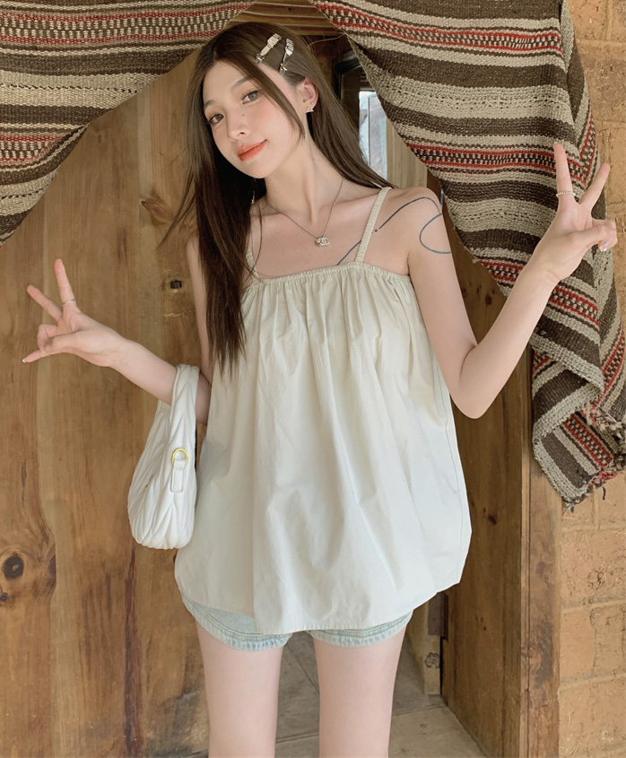 공항패션 공항룩 끈나시 캐미솔 루즈핏 여름 티셔츠