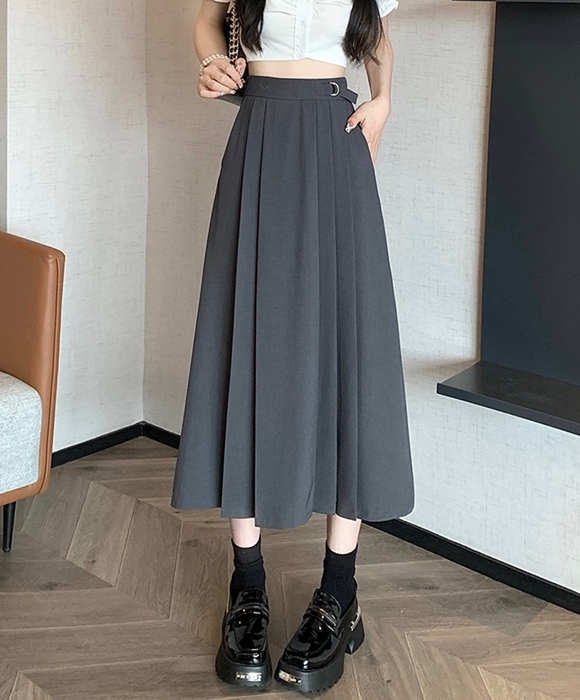 깔끔한 핀턱 정장 치마 맥시멈 스커트 여성 정장 출근룩 데일리 심플 주름잡힌 하이웨이스트 데일리 20대 30대 신상 핫한 스타일리쉬 허리벨트 스커트