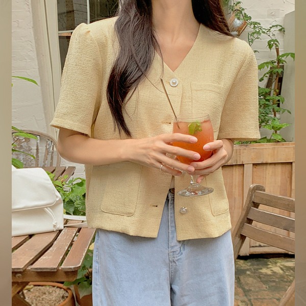 [여름하객룩🖤][MADE] 디엘즈 노카라 진주버튼 퍼프 반팔 트위드자켓(44~110) (여름-신상-격식룩-모임룩-데일리룩-체형커버-오피스룩-결혼식룩-여름트위드-통기성)