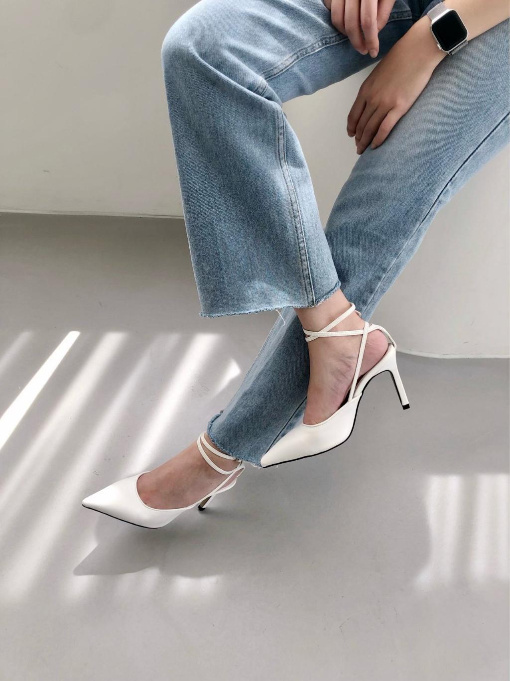 여성 스트랩스틸레토샌들힐 발편한 데일리 화이트힐3컬러 225-250 8cm굽 원피스구두