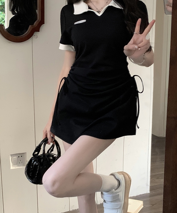카라 스포티룩 셔츠 원피스 카라티원피스 여성스러운 깔끔한 허리 주름잡힌 셔링 드레스 원피스 여성 테니스룩 데일리룩 카라 반팔 스커트