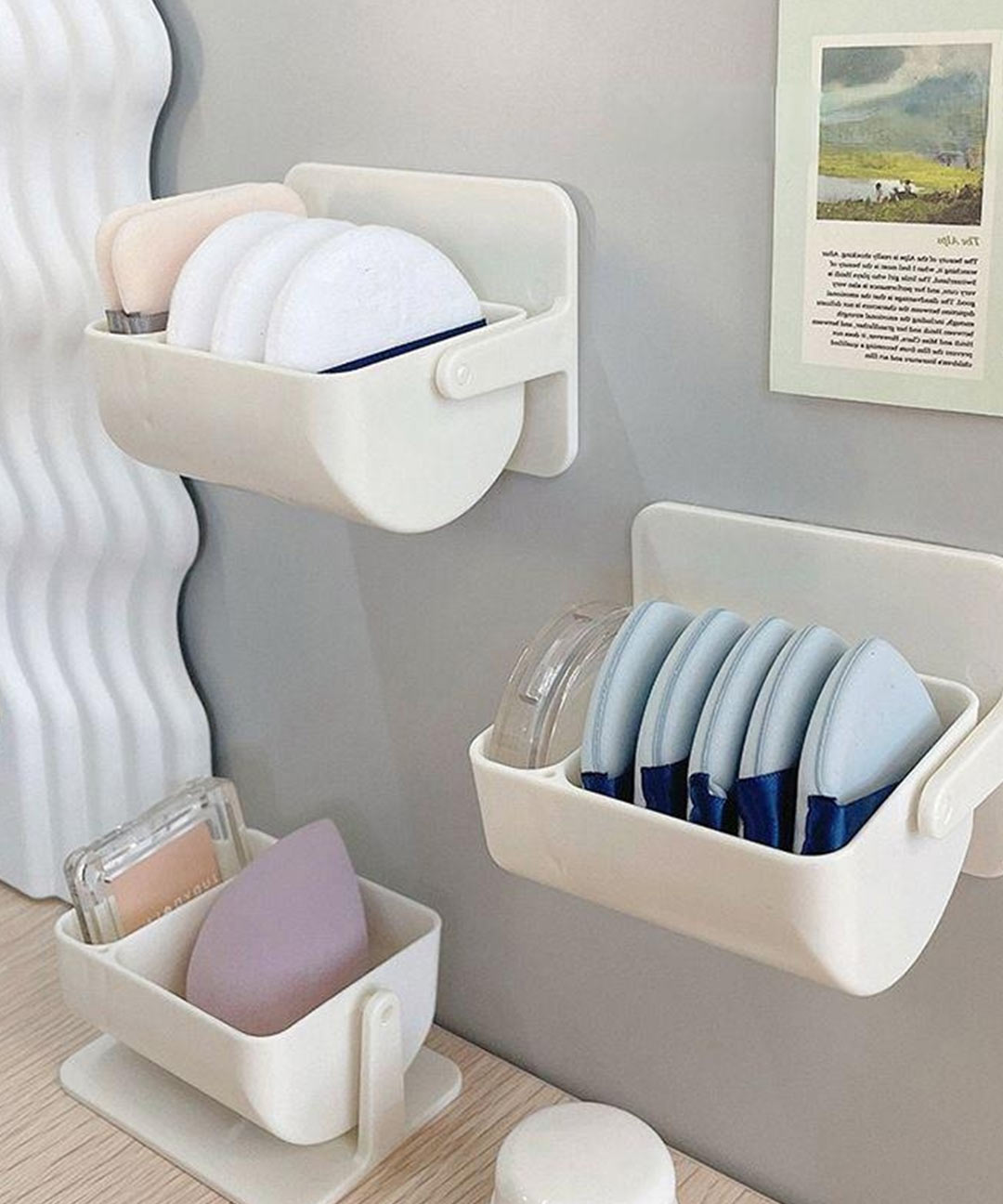 화장품정리대 퍼프보관 수납함 벽걸이