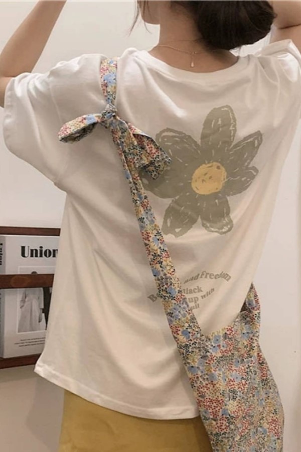 라노 빅 데이지 플라워 라운드넥 반팔 루즈핏 티셔츠