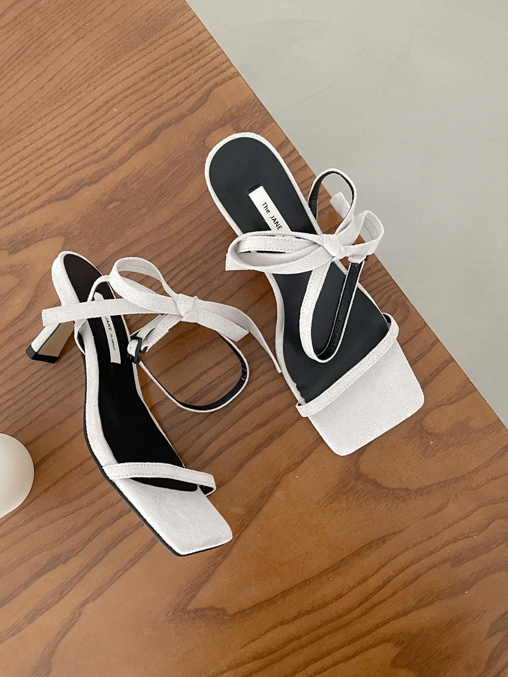 럭셔리 스퀘어 사선 발목 백리본 스트랩 레이스업 샌들힐