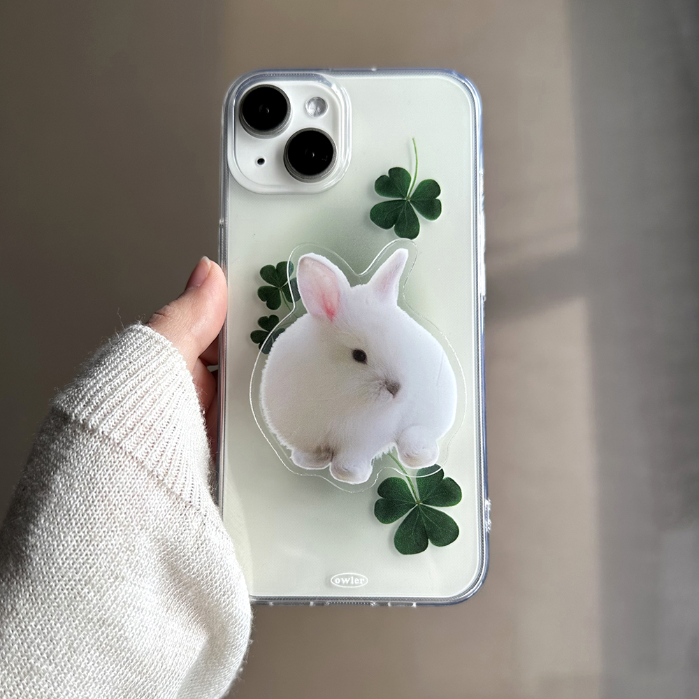 [당일출고/MADE] 흰 토끼 스마트톡세트 핑크그린 그라데이션 네잎클로버 아이폰케이스