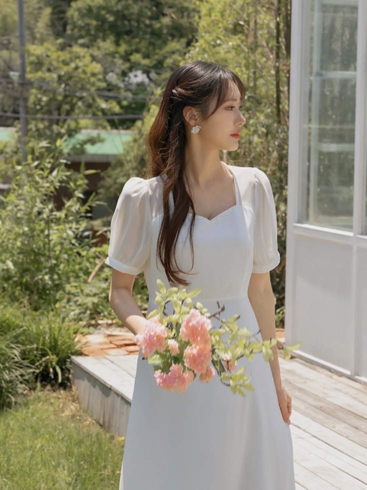 [1천장 돌파✨][웨딩룩] [44-120] 제이니얼 시스루 하트넥 플레어 롱 원피스 (봄-여름-가을-하객룩-파티룩-격식룩-빅사이즈-120사이즈-자체제작-셀프웨딩-브라이덜샤워-A라인-고급스러운-여름하객룩)