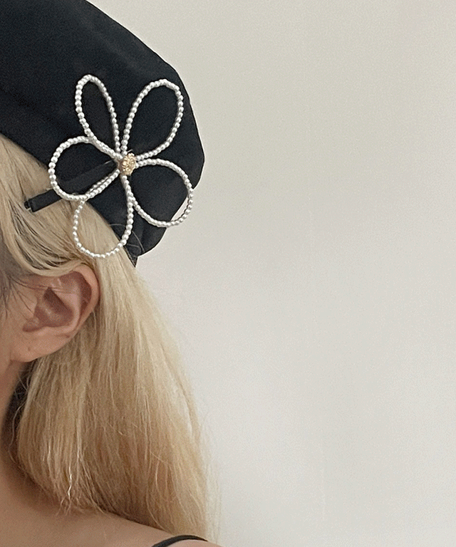 [인생샷/2color] 베레모 코디 빅 플라워 진주 비즈 옆머리 헤어핀 집게핀