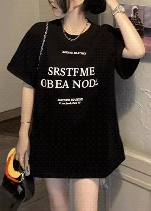 [하의실종/2color] 영어 알파벳 스펠링 화이트 블랙 라운드넥 아방 루즈 반팔 여름 롱 박시 티셔츠