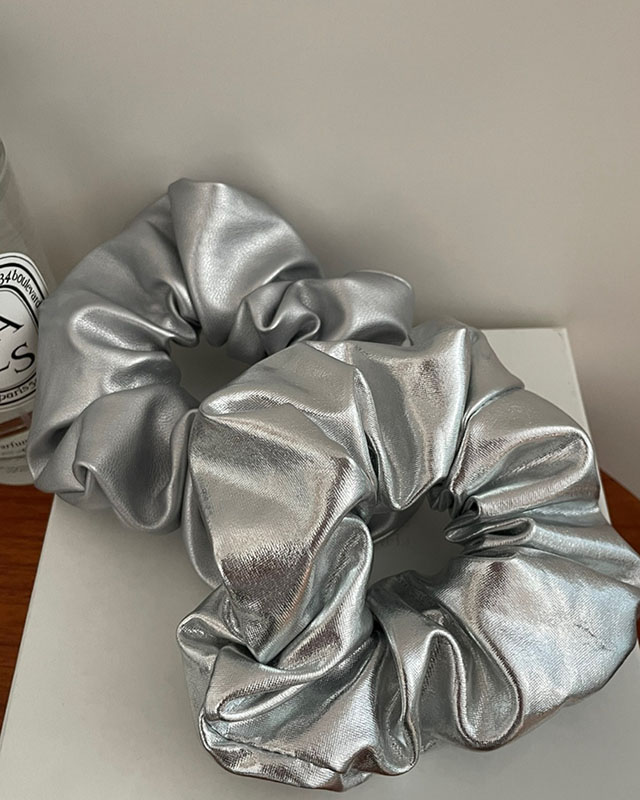 실버헤어슈슈 곱창(무광,유광) 핸드메이드,슈슈,데일리머리끈,Y2K,고무줄,유행고무줄,데일리,헤어끈,유행머리끈,여름,곱창,헤어슈슈