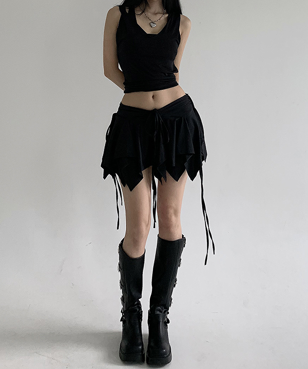 포포 셔링 로우라이즈 y2K 치마바지 플레어 미니 스커트(블랙,화이트)