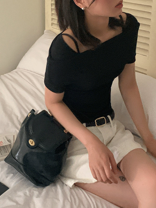 [연베이지소량당일🚚/승모근커버/여리핏] 올유어 셔링 오프숄더 반팔 티셔츠