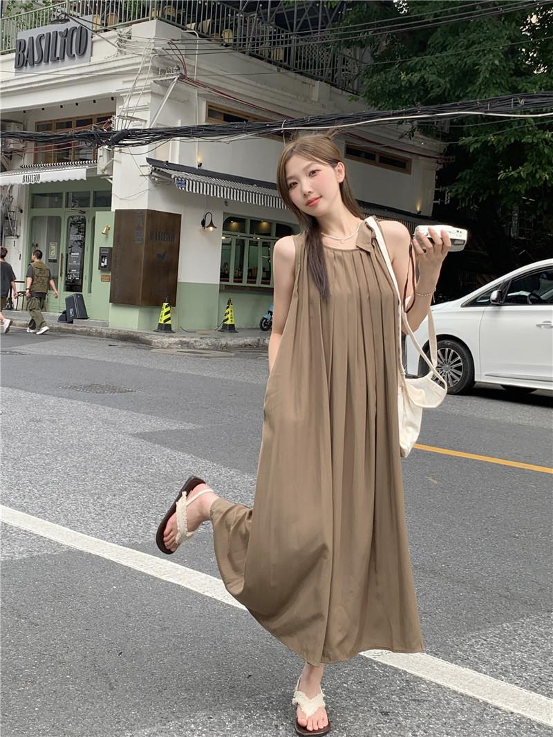 루즈핏 여름원피스 롱원피스 여성 나시 슬리브리스 레이어드 뷔스티에 주름 리본 봄 바캉스룩 리조트룩 여행 비치 휴양지옷 동남아 휴가 30대 40대 여자 레이디 데일리룩 심플 베이직 캐주얼