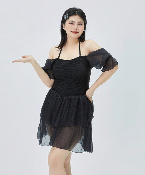 [+동영상] 빅사이즈 프리티블랙 쇄골미녀 원피스수영복 (블랙)